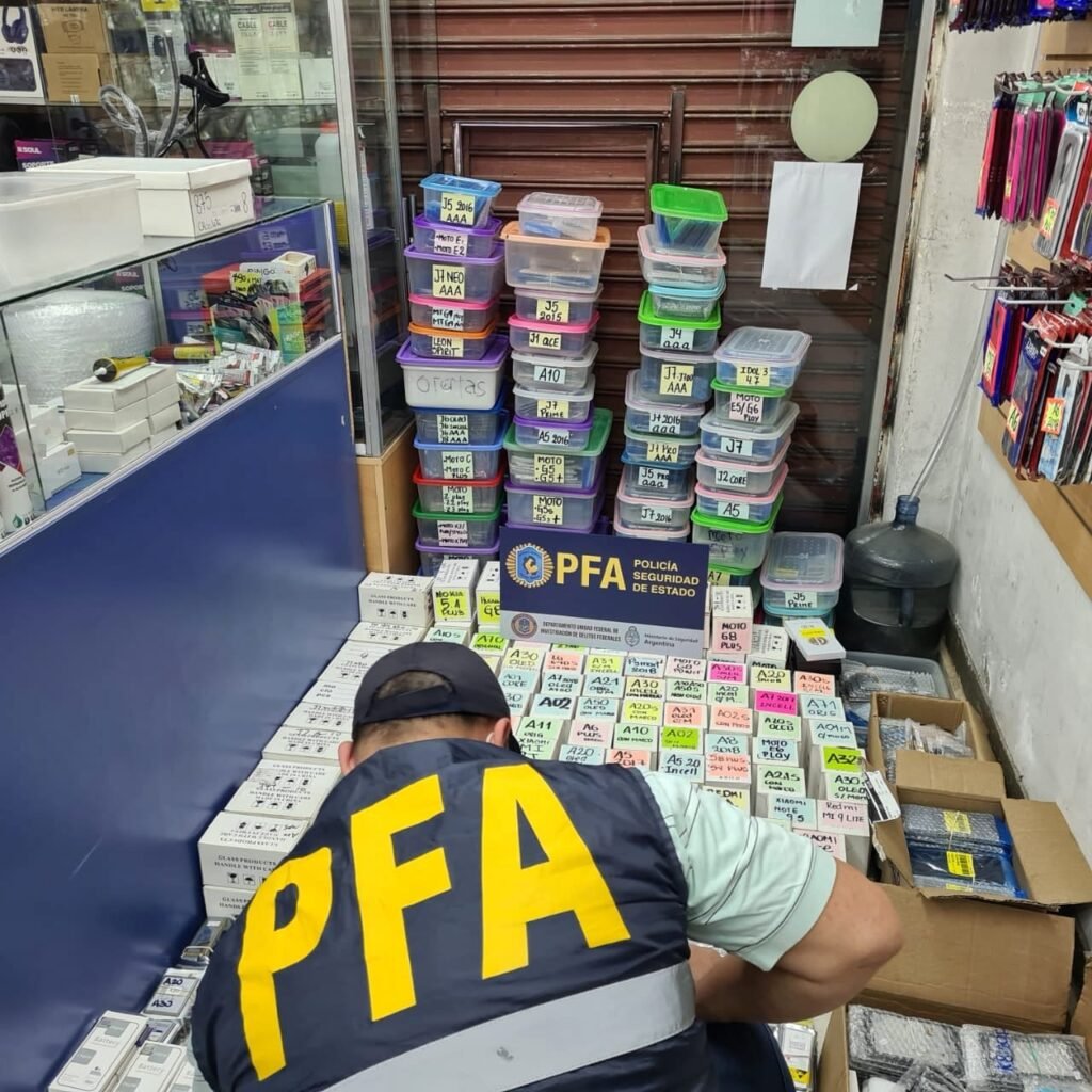 Su modus operandi: ingresaban los productos a través de pasos fronterizos informales en Misiones y luego vendían los teléfonos celulares, repuestos y accesorios en la ciudad y provincia de Buenos Aires. Establecida este modo de actuación, el magistrado actuante dispuso el inmediato allanamiento de 37 domicilios (19 en CABA, 15 en PBA y tres en Misiones), lo que derivó en la detención de 11 personas más (además del detenido por la GNA) y la incautación de 1.175 teléfonos celulares, 10 autos, 3.800 repuestos, 12.000 dólares, 1.200.000 pesos, 660 euros y más divisas de diferentes orígenes, máquinas para contar dinero, 120 parlantes, una máquina para desbloquear equipos y una enorme cantidad de documentación, que será de vital importancia para la causa.