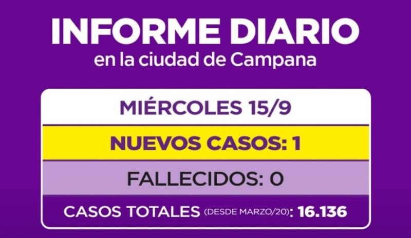Con estas cifras, en Campana y desde el comienzo de la pandemia ya se registraron 16.136 casos positivos y los fallecidos hasta el momento se ubican en los 305.