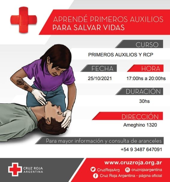 Los temas a desarrollar son Primeros Auxilios y Reanimación Cardio Pulmonar. Para más información se puede consultar al 3487-647091.