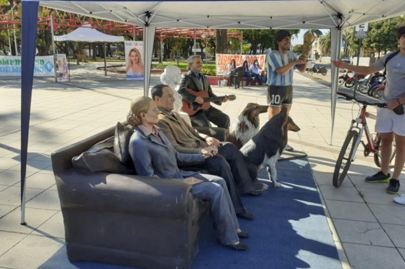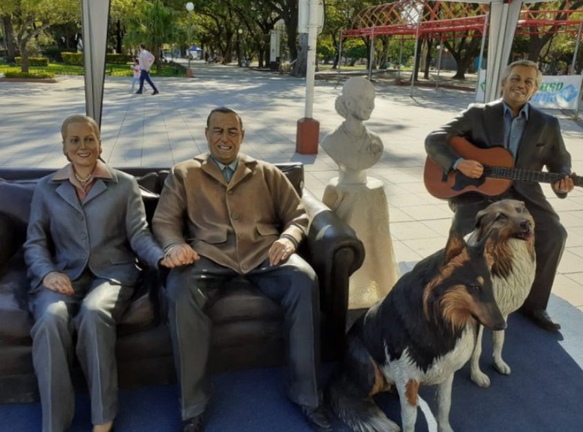Un Alberto Fernández sonriente, relajado, tocando la guitarra, y secundado por sus perros: Dylan y Prócer. El Presidente y sus mascotas quedaron inmortalizados en estatuas que fueron exhibidas en distintas plazas de Formosa. Así la provincia gobernada por Gildo Insfrán volvió a ser noticia, pero esta vez por una muestra itinerante de esculturas peronistas que incluyó al mandatario y sus perros.