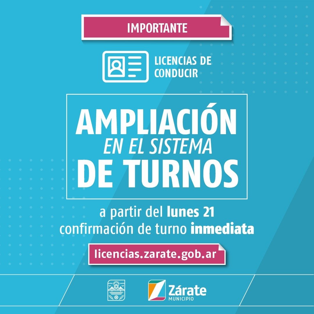La Municipalidad de Zárate, informa que se están realizando modificaciones en el sistema de asignación de turnos para la obtención de licencias.