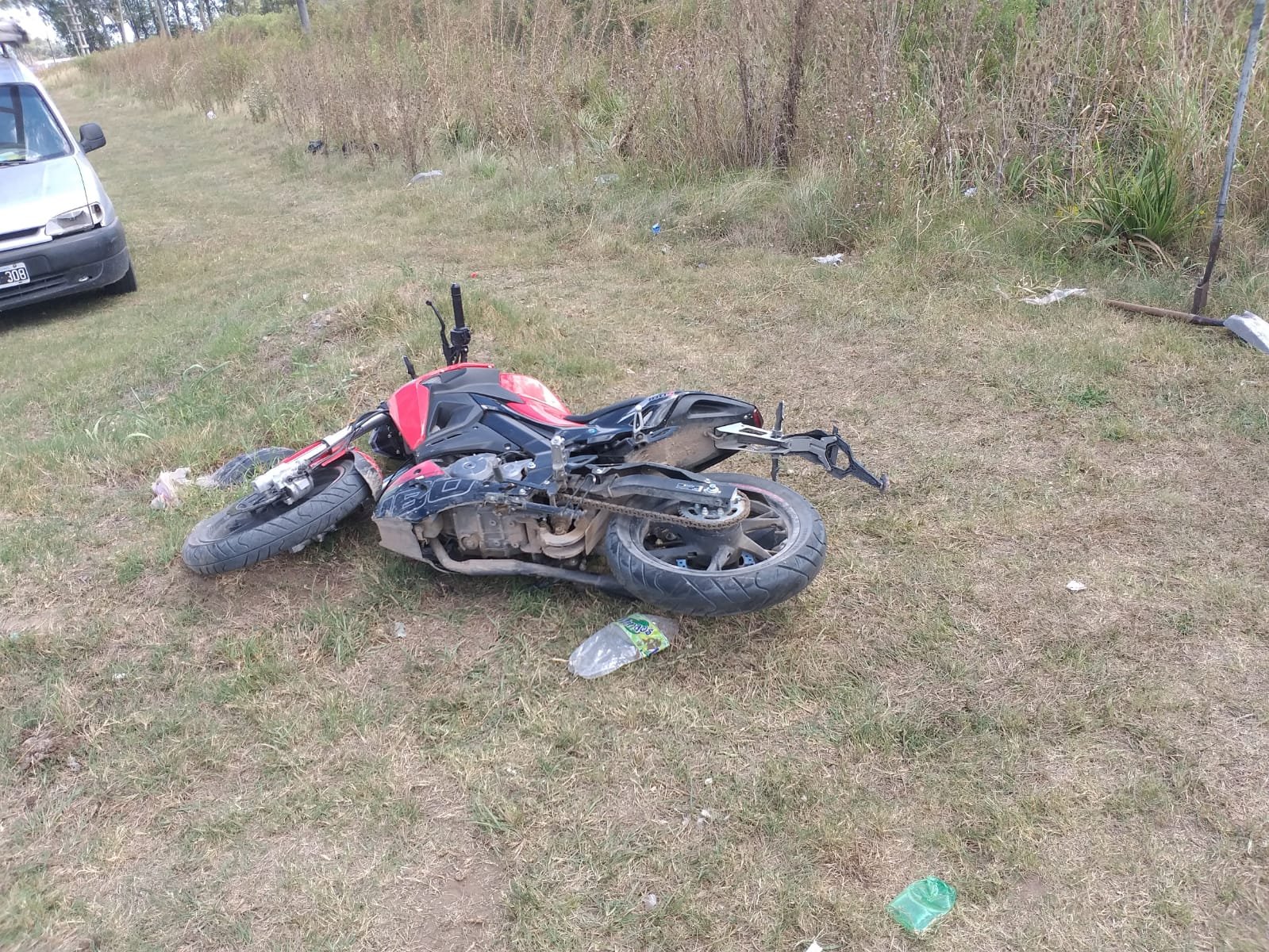 Seis trabajadores fueron las víctimas quienes alertaron a la policía de lo sucedido. Al intervenir en el lugar los agentes policiales constataron que la moto abandonada color roja y negra, poseía pedido de captura.