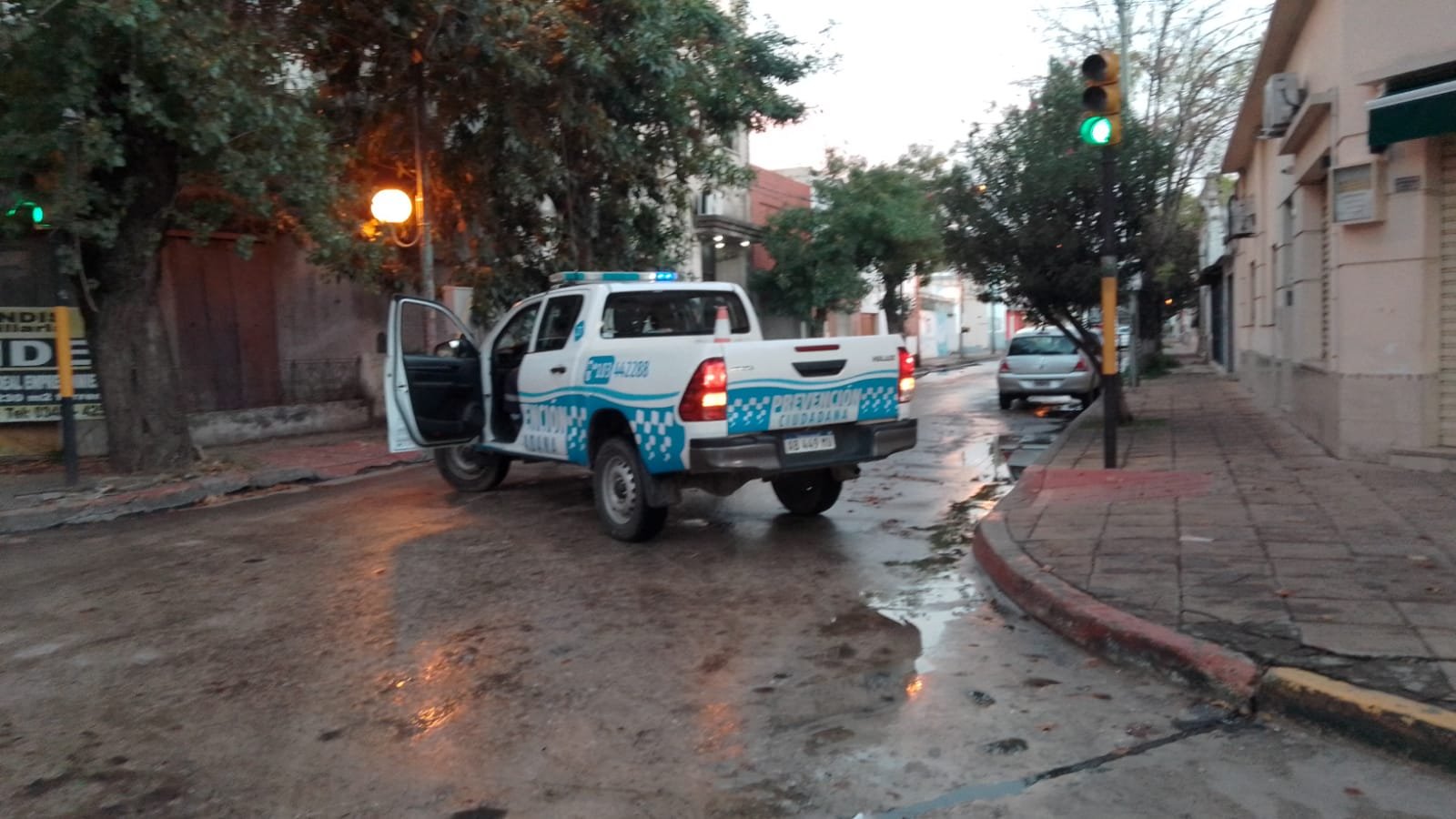 Mientras esperan ser asistidos desde las 17:00 aproximadamente un móvil de la DPU permanece cortando el tránsito en el cruce de Moreno y Rivadavia.