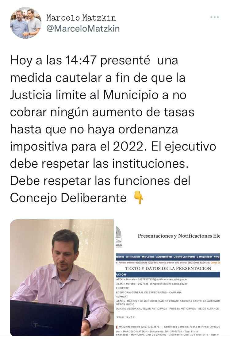 Impacto Local Zárate - Noticias y Actualidad de la Ciudad > Blog > Política > «Aumento ilegal de tasas»: Matzkin presentó una medida cautelar en la justicia