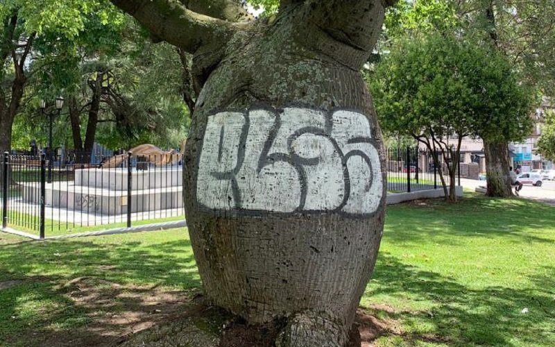 En este sentido, el intendente Sebastián Abella difundió hoy un video en las redes sociales en el que manifiesta su descontento: «Lamentablemente el vandalismo en los espacios públicos de la ciudad se ha multiplicado, pero también hemos encontrado el vandalismo en los árboles de las plazas».