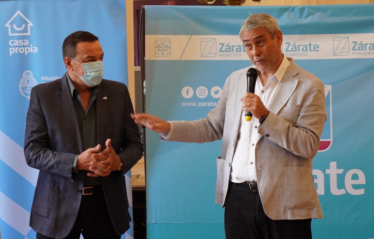 Asimismo, detalló: “Hay 40.000 argentinos que están construyendo con este crédito y en el último sorteo se anotaron más de 52.000. Desde el Ministerio venimos generando distintas políticas como es el caso particular de Zárate. Encaramos más de 30.000 viviendas en desarrollos urbanísticos, de las cuales 208 son de esta ciudad. Más de 30.000 lotes con servicios en toda la Argentina, siendo 347 de aquí. Estamos terminando cerca de 45.000 viviendas que quedaron paralizadas hace mucho tiempo en todo el país. Y hoy tenemos en ejecución mas de 100.000 viviendas entre todos los programas”.