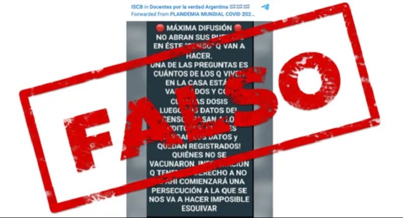 Según la fake news, en el censo se preguntará «cuántos de los que viven en la casa están vacunados y con cuántas dosis» con el fin de que el Estado tenga conocimiento de quiénes no están vacunados contra el coronavirus.