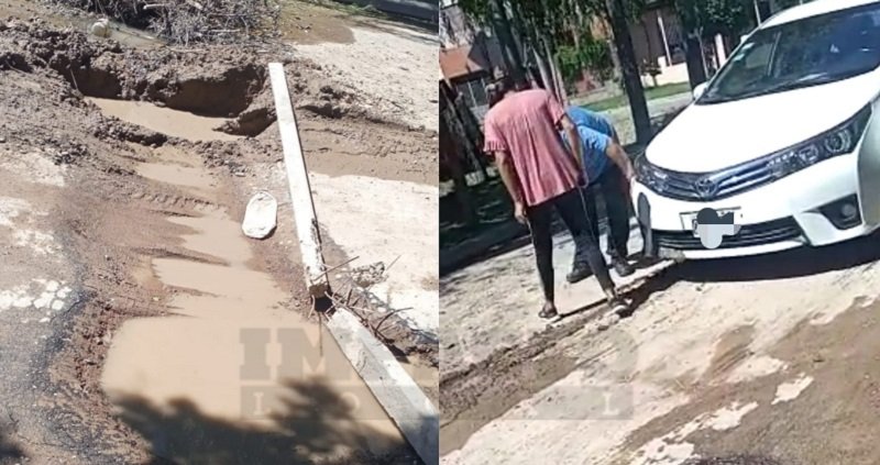 Vecinos del barrio Protierra expresaron su malestar ante el pésimo estado en el que se encuentran las calles, pero particularmente en Córdoba y Larrea donde un profundo bache se formó tras la constante pérdida de agua.