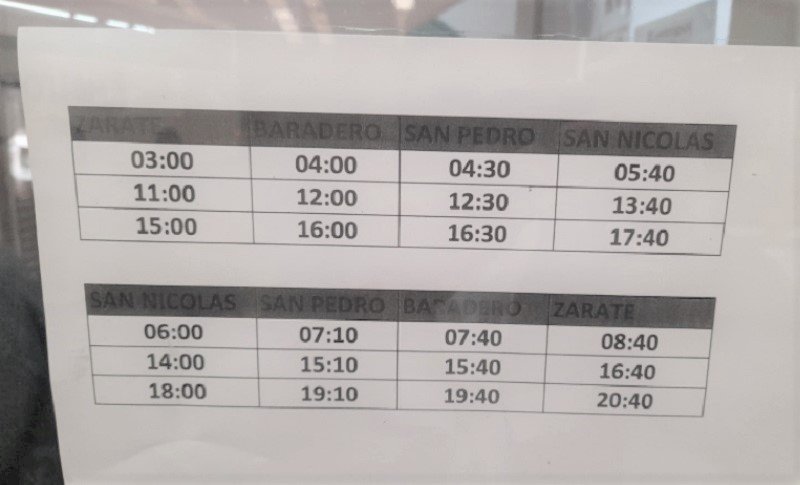 HORARIOS DEL SERVICIO DESDE ZARATE Y DESDE SAN NICOLAS: