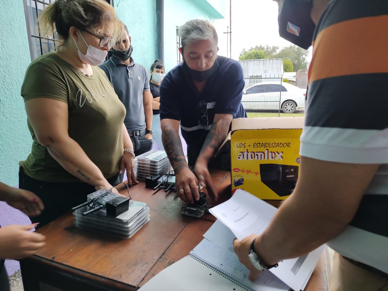 Los dispositivos otorgados fueron los siguientes: 4 bases con bocinas, 3 lectores monitores y 80 botones antipánico destinados a barrio Bosch, 4 bases con bocinas, 3 lectores monitores con 80 botones para el barrio Villa Eugenia y 1 base con bocina con 1 lector monitor y 40 botones para colectora Oeste (parada de colectivos).