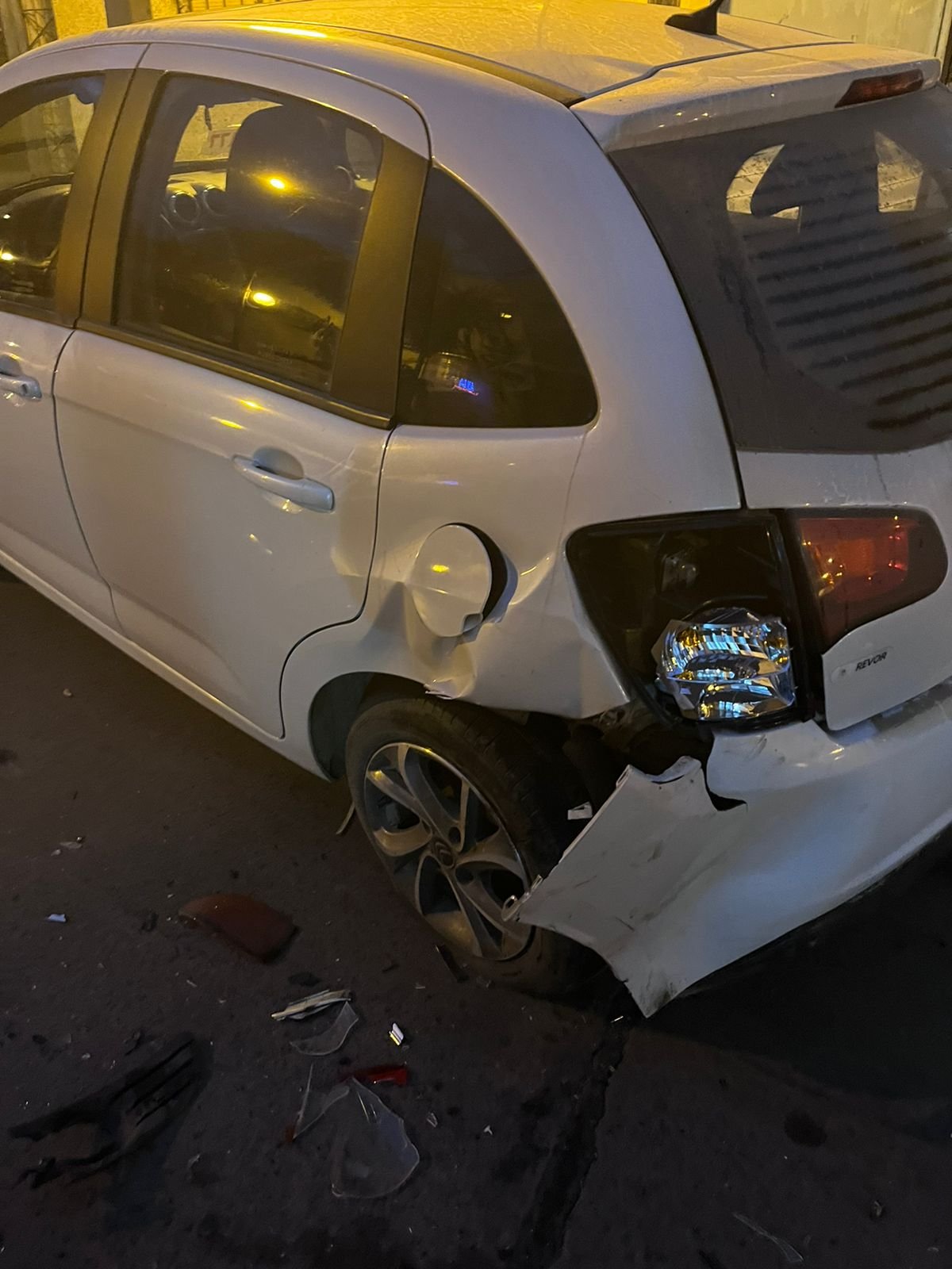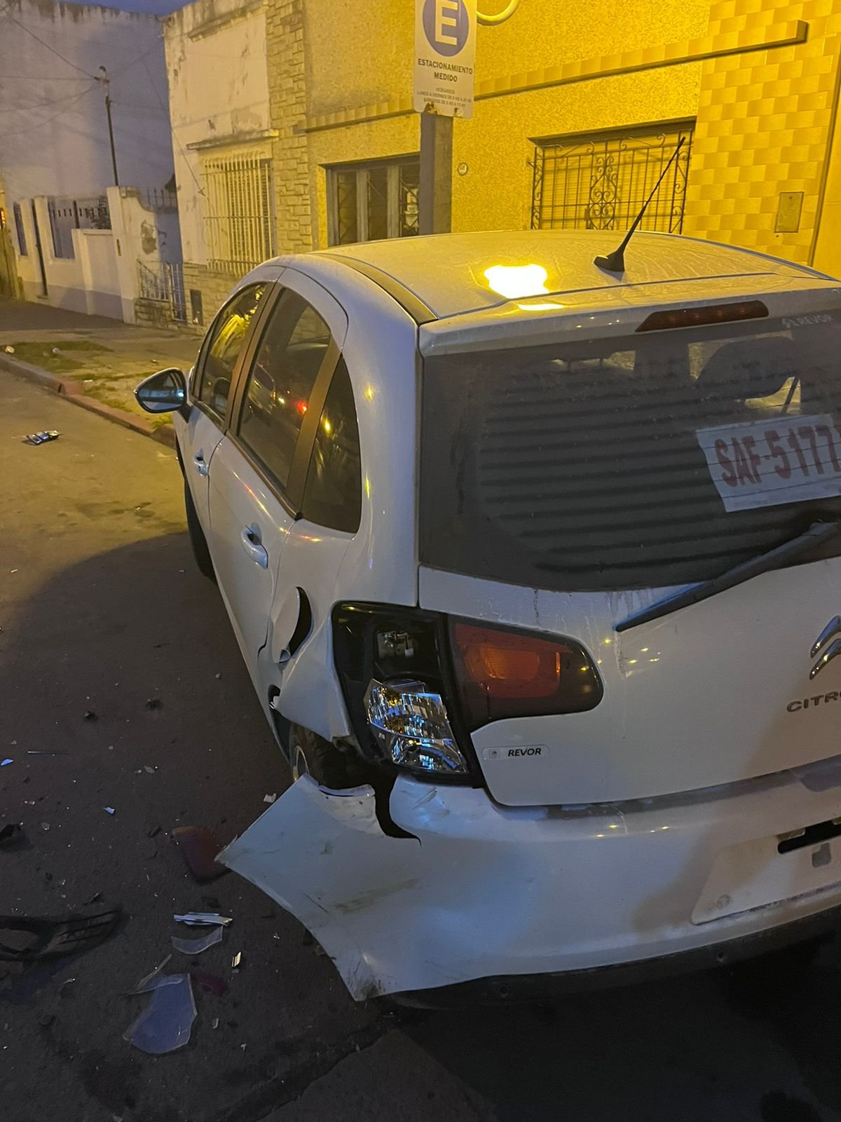 «Por favor necesito encontrar a la persona» expresó consternada la joven que encontró su vehículo «chocado contra un poste» con daños que implicarán una importante suma de dinero para su reparación.