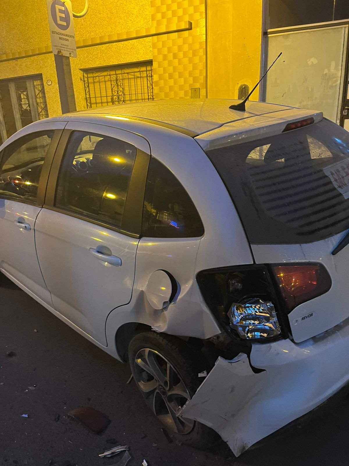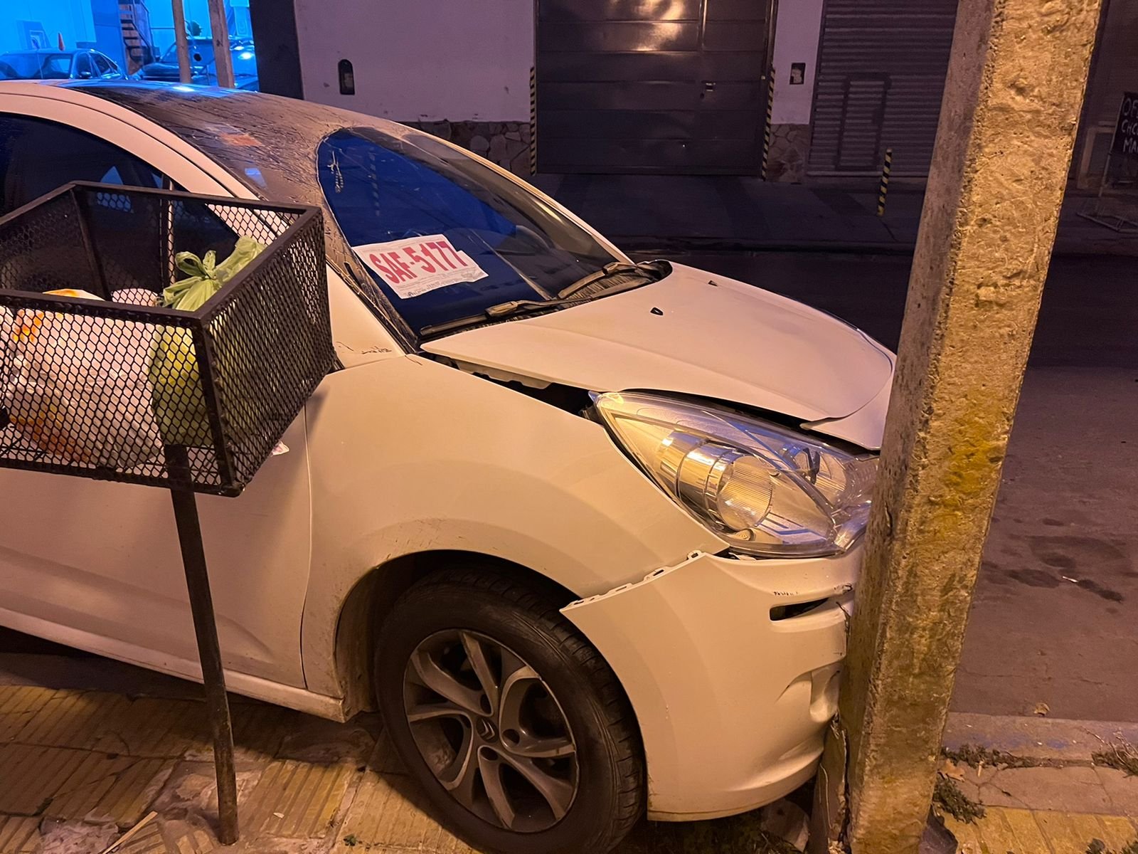 «Por favor necesito encontrar a la persona» expresó consternada la joven que encontró su vehículo «chocado contra un poste» con daños que implicarán una importante suma de dinero para su reparación.