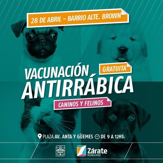 El Municipio de Zárate a través de la Secretaría de Salud, realizará una nueva jornada de vacunación para la prevención de la rabia en perros y gatos.