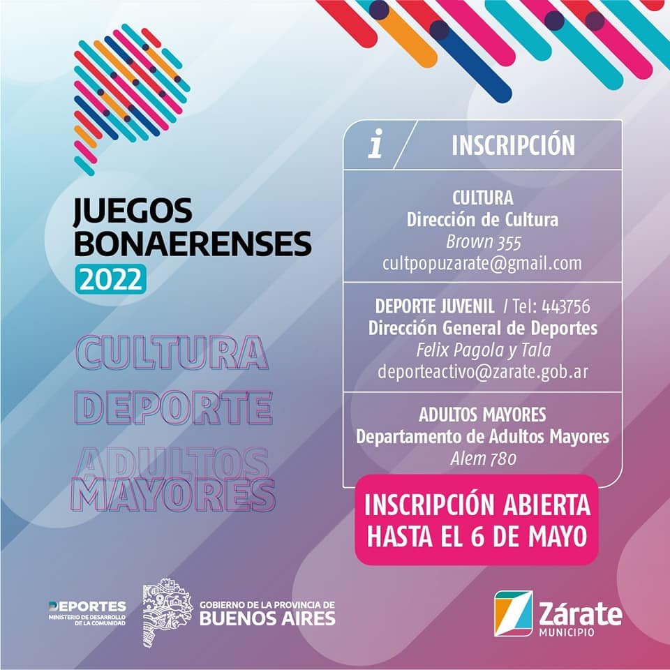📣 Se encuentra abierta la inscripción a los Juegos Bonaerenses 2022 hasta el 06 de mayo.