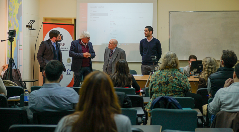 José Luis Antúnez, presidente de Nucleoeléctrica Argentina e Isidro Baschar, director de la empresa, participaron del anuncio de este convenio, junto a Raúl Bertero, director de la maestría, presidente del CEARE y vicedecano de la Facultad de Ingeniería de la UBA, y Griselda Lambertini, Coordinadora Académica de la maestría, ante alumnas y alumnos del programa