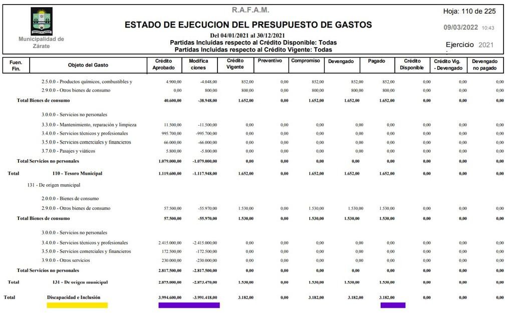 Así lo dice la Rendición de Cuentas enviada por el Municipio que se votará en las próximas semanas. “Discapacidad e inclusión tenía un presupuesto de casi 4 millones de pesos y desviaron casi todo, dejándole sólo 3182 pesos. Con eso demuestran la desatención y el poco sentido de hacer un Zárate inclusivo” dijo la Concejal de JUNTOS, Natalia Blanco.