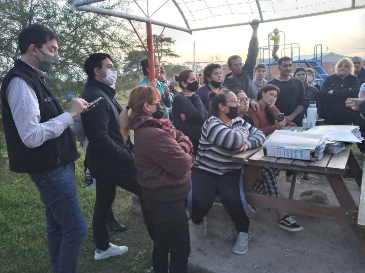 Funcionarios de la Secretaría de Hábitat y de Desarrollo Territorial junto al concejal del Frente de Todos Javier Yagode, mantuvieron una reunión con vecinos y miembros de la Sociedad de Fomento de Barrios Unidos en la plaza ubicada en calle French y 56.