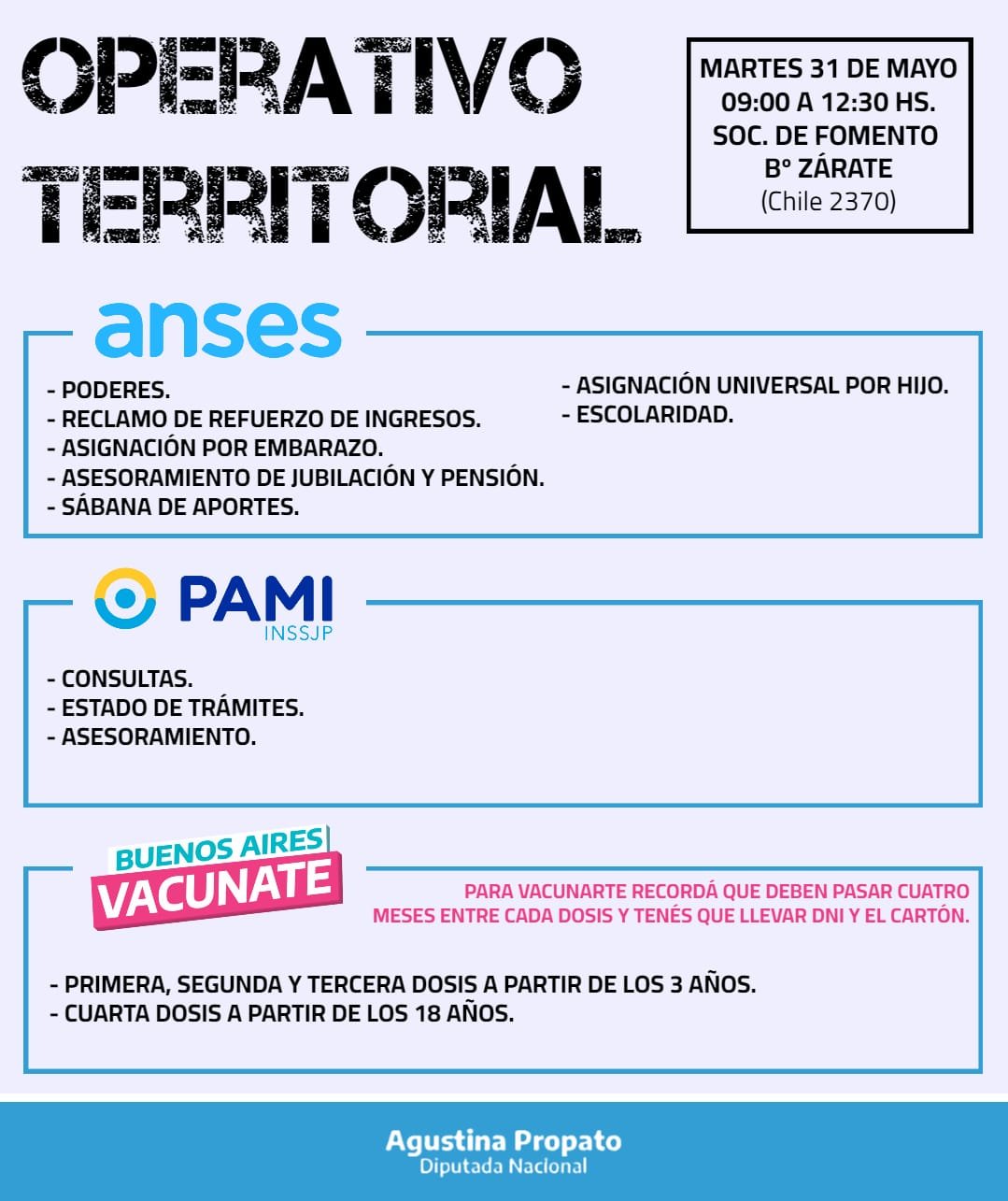 Organizado por la agrupación 20 de Noviembre que conduce la Diputada Nacional Agustina Propato, el próximo martes se desarrollará un importante operativo territorial.
