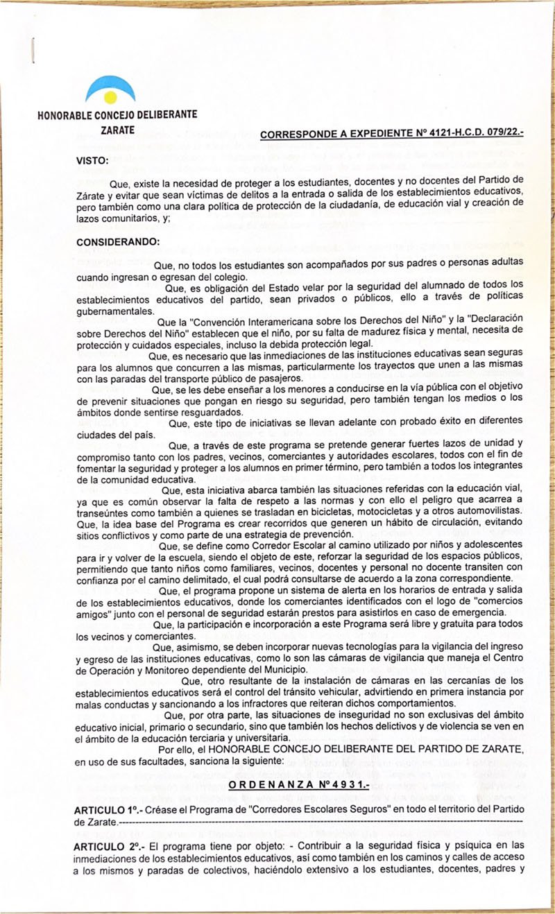 Tras el Veto del Intendente Cáffaro invitan a la comunidad a acompañar para que sea obligatoria la Ordenanza 4931 de “Corredores Escolares Seguros” bajo el lema “Queremos vivir más seguros”.
