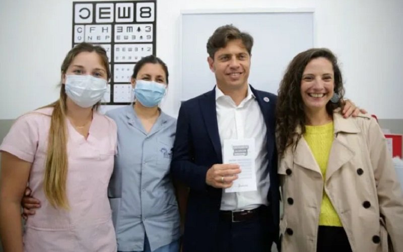 El gobernador de Buenos Aires asistió al vacunatorio acompañado por la subsecretaria de Gestión de la Información, Educación Permanente y Fiscalización del Ministerio de Salud, Leticia Ceriani, y el director ejecutivo de la institución, Juan Pablo Cocozzella.