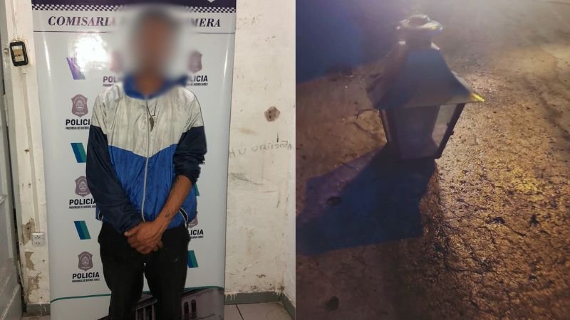 Personal policial procedió a la aprehensión de un hombre de 35 años que momentos antes, había sustraído un farol de luminaria de una vivienda ubicada en calle General Paz, entre Quirno y Sarmiento.