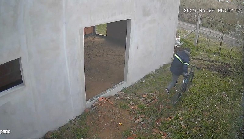 El hecho ocurrió alrededor de las 8:40 AM. En el video se puede ver cómo el hombre ingresa por el frente, recorre el lugar en busca de objetos de valor, y al no encontrar nada, huye por el fondo hacia el terreno lindero, donde logra sustraer una bicicleta nueva, propiedad del empleado de seguridad.