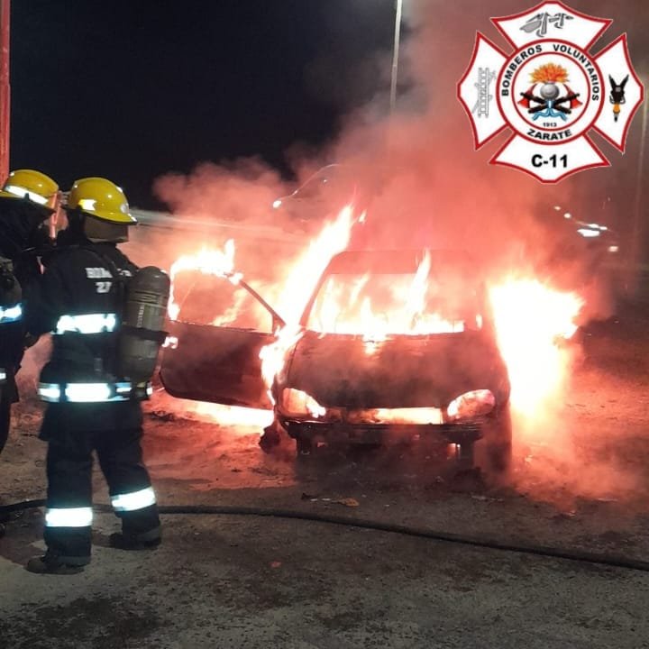 En la noche del sábado, siendo las 22:45, los Bomberos Voluntarios de Zárate fueron alertados por un incendio vehicular en Avenida Antártida y colectora, frente a la estación de servicio Puma.