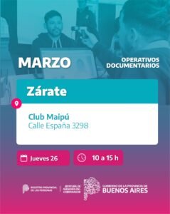 Por sexto año consecutivo, el Gobierno de la Provincia de Buenos Aires acercará al Partido de Zárate los operativos móviles de documentación del Registro Provincial de las Personas, una política pública que permite a vecinos y vecinas realizar trámites esenciales de manera rápida y cerca de sus hogares.