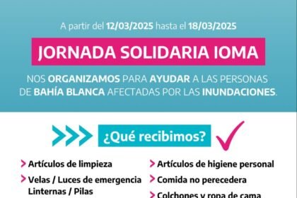 IOMA Zárate organiza una colecta de donaciones para los vecinos de Bahía Blanca