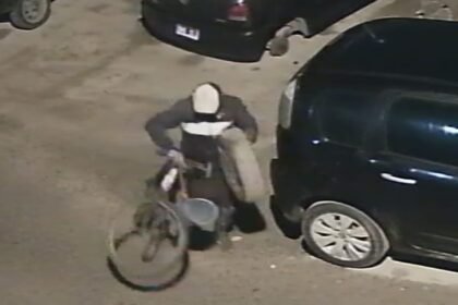 Robó la rueda de un auto y se la llevó andando en bici