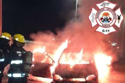 Pérdidas totales en un incendio de auto frente a una estación de servicio
