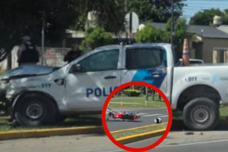 Violento choque entre un patrullero y una moto en Av. Antártida