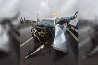 Peligro en Panamericana: delincuentes colocaron una viga de cemento para reventar los neumáticos de un auto y lo tirotearon