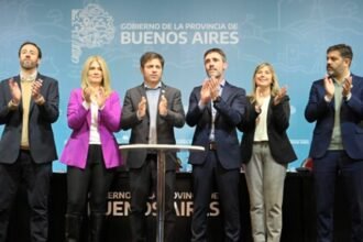 El gobernador bonaerense, Axel Kicillof, encabezó este lunes el acto en el…